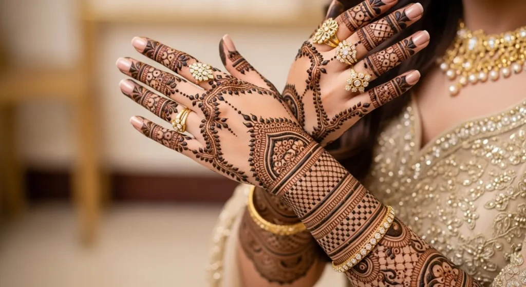 Simple Royal Mehndi Design is a beautiful and traditional form of body art made using a natural paste from the powdered leaves of the henna plant. It is widely applied on hands and feet during special occasions like weddings, festivals, and cultural celebrations. Mehndi designs can vary from simple and elegant patterns to detailed and artistic creations, representing beauty, happiness, and joyful moments. If you want to explore more about its history and meaning, you can visit Mehndi.